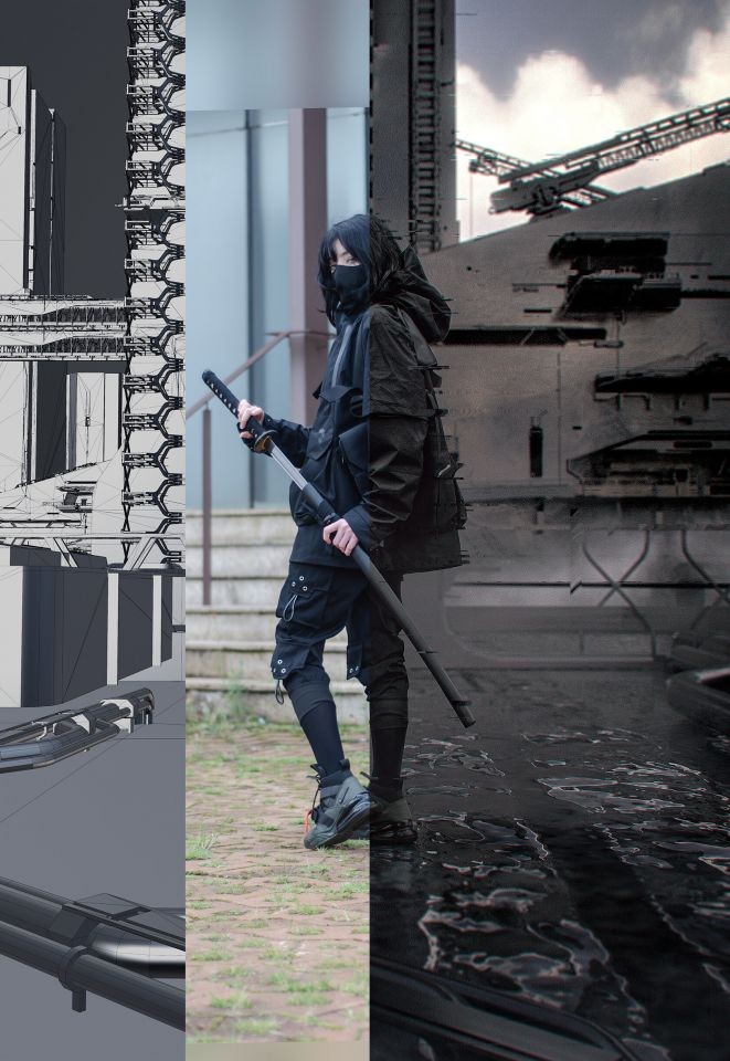 Aku 悪:首先聲明這張並不是我拍攝的照片,而是 coser Ana 特地傳給我後製的。我很快地就建構出了概念和背景,包括渲染時間僅花了 2 到 3 個小時左右。最困難的地方在於將照片與 CG 背景融合,我所有的作品而言都會遇到這個挑戰。