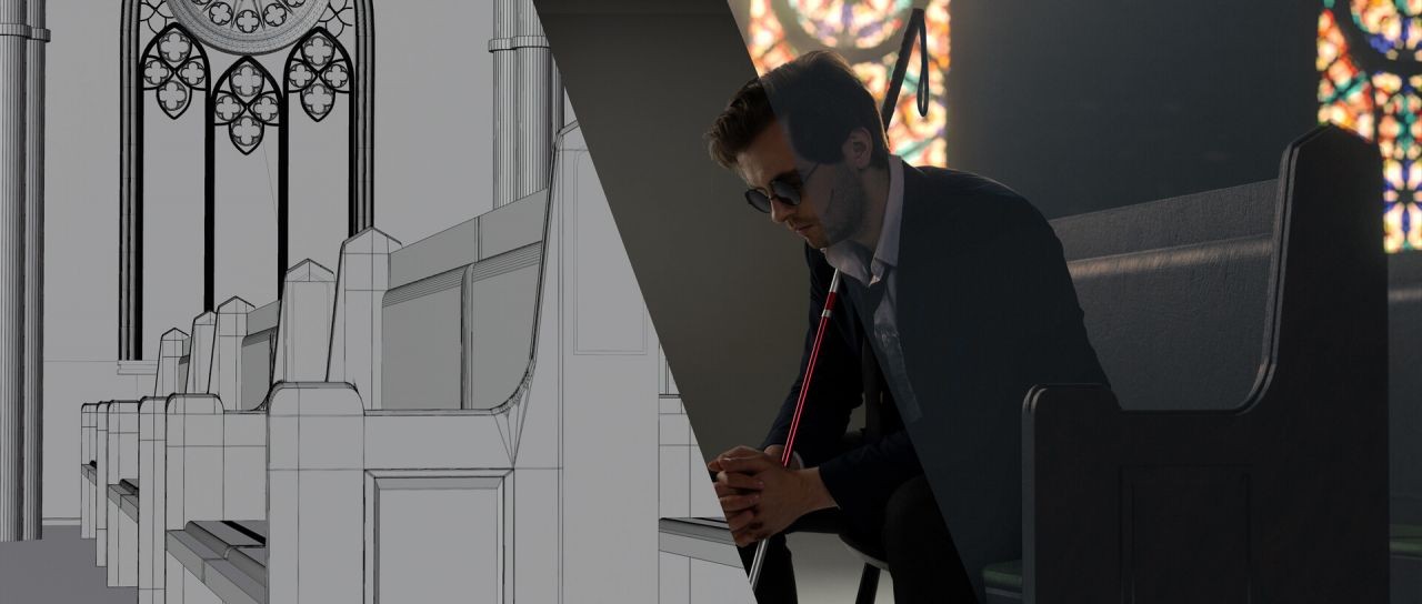 Aku 悪:教堂場景是我最喜歡的,因為這張照片傳達了強烈的情感。夜魔俠是一個情感相當複雜的角色,他內心的衝突將我們吸引到他的故事中,個性豐富且立體,因此我使用了變形和景深來達到電影般的畫面。