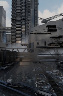 Aku 悪:這個場景中最困難的是讓水和其他模型互動,我在凹凸通道 (bump channel) 中建立了一個粗糙度幾乎為零的噪聲紋理,並在平面上製造出水的效果。這是一個可以節省時間的小技巧。