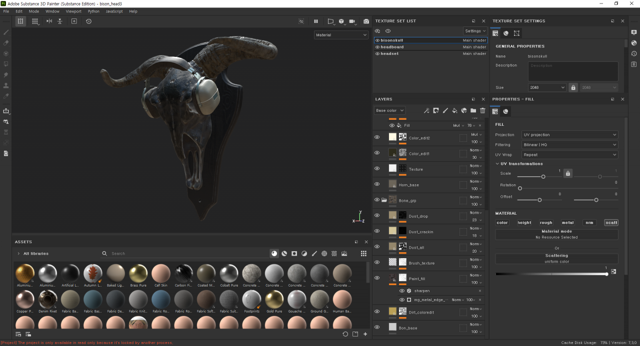 完成 UV 操作後,使用 Substance Painter 或 Substance Designer 製作紋理。在處理基本顏色或紋理的同時添加污垢和磨損,並想像道具的放置位置、材料的老化和觸感。有人在此生活的感覺是很重要的一點,這不是一件容易的事,但它很有趣,喚起了一種挑戰精神。為了呈現良好畫質的法線,我使用 Substance Designer 創建具有原始感覺的新紋理。
