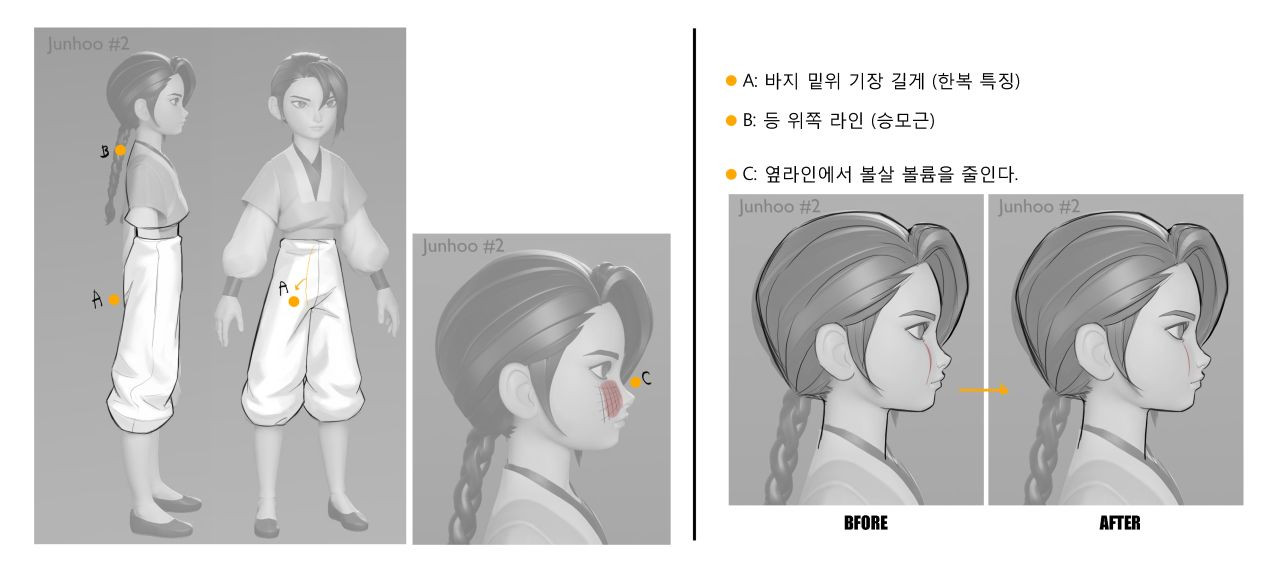 角色設計向來是 LOCUS Animation 的強項,此次以正邪大戰為題的作品,其設計語彙更是與以往截然不同。「我們希望每位驅魔師的個性都能從外型上清楚地反映出來,例如承嬉的自由奔放、俊厚的沉穩傳統、玄岩的正義感與衝勁,以及朴神父內斂而深藏的痛苦,讓他們的個性能夠一眼就傳達給觀眾。」此外,團隊也確保所有驅魔師的輪廓和身型互不重疊,這樣一來,當所有角色同時出現在場景中時,依然各具特色。