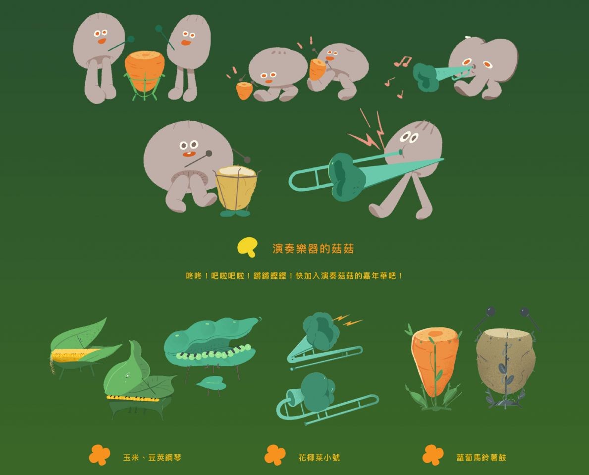Art / 煒莉:對於蘑菇角色發想可以說是天馬行空,想帶給觀眾繽紛的色彩,以及童趣的角色表演在造型設計上也更貼合小朋友的身形比例,希望小朋友也可以將自己投射在小蘑菇身上。