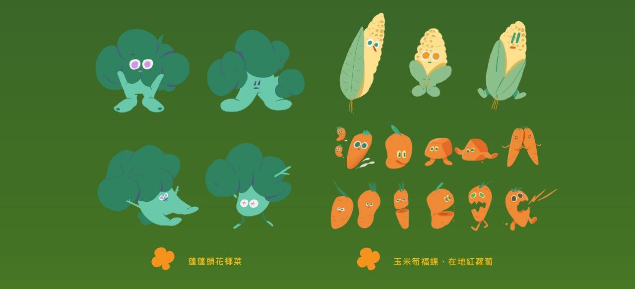 Art Director / 子庭:聽過音樂後,約莫用了 1 周的時間確定了整支影片的概念,接下來的 3 週發展角色與場景設計。這段期間內,我們嘗試了大量的角色設計,將許多蔬菜、蘑菇轉化成可愛的角色及場景。動畫部分因涵蓋了手繪動畫及 After Effects 製作,則用了 3 個多月進行製作。