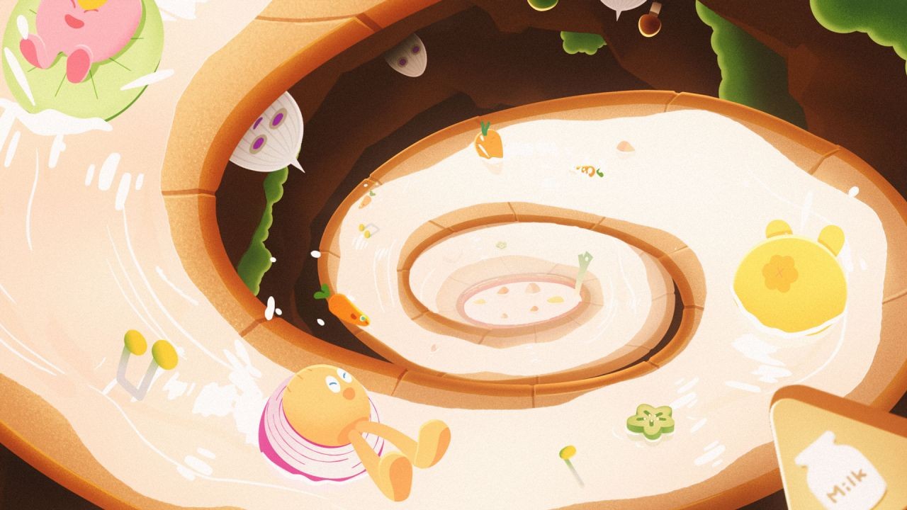 Art Director / 子庭:除了音樂整體令人很有畫面感之外,在音樂的節拍、段落、歌詞都讓我們在劇情設定上有更多想像空間。例如有段:「拿起我的湯匙,我要咕嚕咕嚕咕嚕吃掉」的歌詞,配合漸漸加快的節拍,馬上就讓團隊想到加入了牛奶海浪、牛奶滑水道、牛奶飄飄河等跟水有關的橋段。