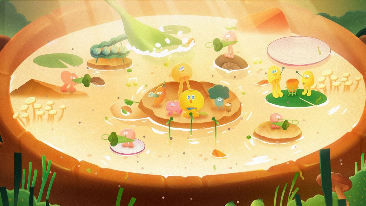 另一個困難是實現豐富奇幻的環境,幾乎所有的環境都盡可能地建構空間感和豐富的動態,從森林中的各種食材住民、植物的搖曳、濃湯上的粼粼波光、森林中灑下的光線和霧氣,空氣中飄動的孢子等都盡量加入動態,帶來一種環境是活著的感受,而不是一塊不會動的背景畫。也希望小朋友每次看都能有新發現。