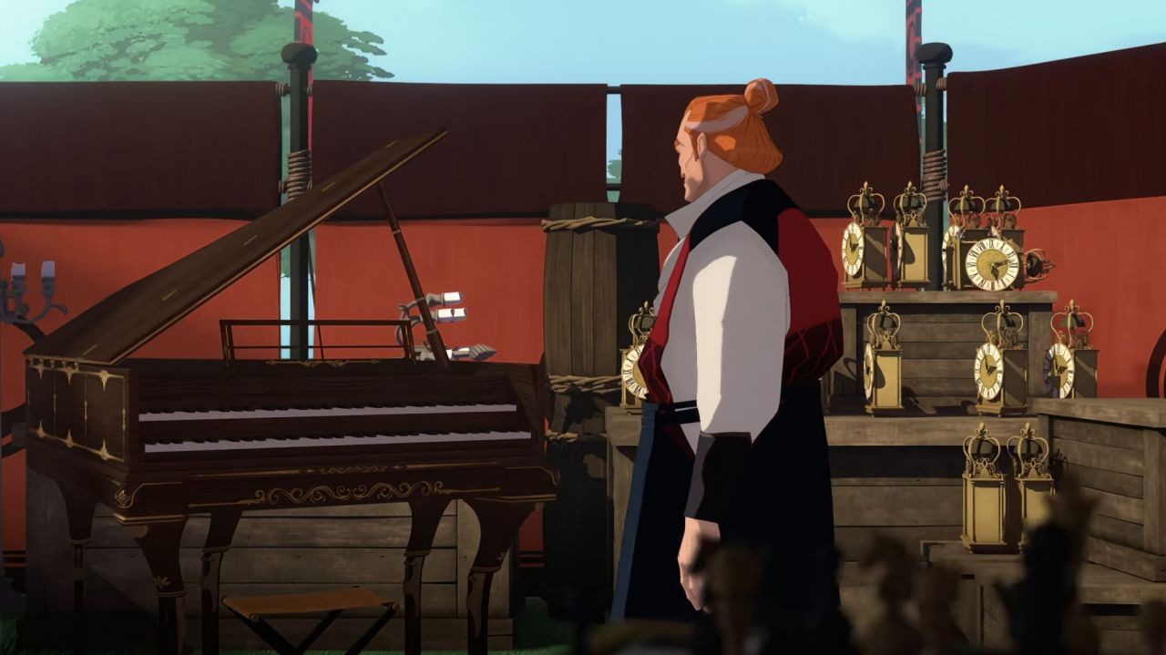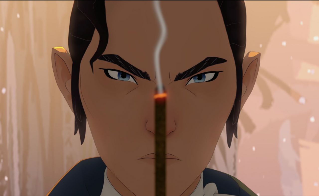 Liam: Netflix 當時招標《藍眼武士》這項專案時,有來自世界各地的動畫工作室競標,也包括 Blue Spirit 在內。最終,Blue Spirit 在試做片段中詮釋了精美真實的人物情感演繹,從而脫穎而出獲得了《藍眼武士》的全權製作權。除了 Blue Spirit,前期的概念圖,場景風格設定則是由 Netflix 單獨僱用的各路優秀畫師們負責,其中包括了參與過傳統迪士尼人物設計的繪師,參加過《愛 x 死 x 機器人》的繪師等等。Blue Spirit 總部在巴黎,我們蒙特利爾分部負責了主要的內容製作,巴黎方面負責了大部分的人物建模,以及後製。