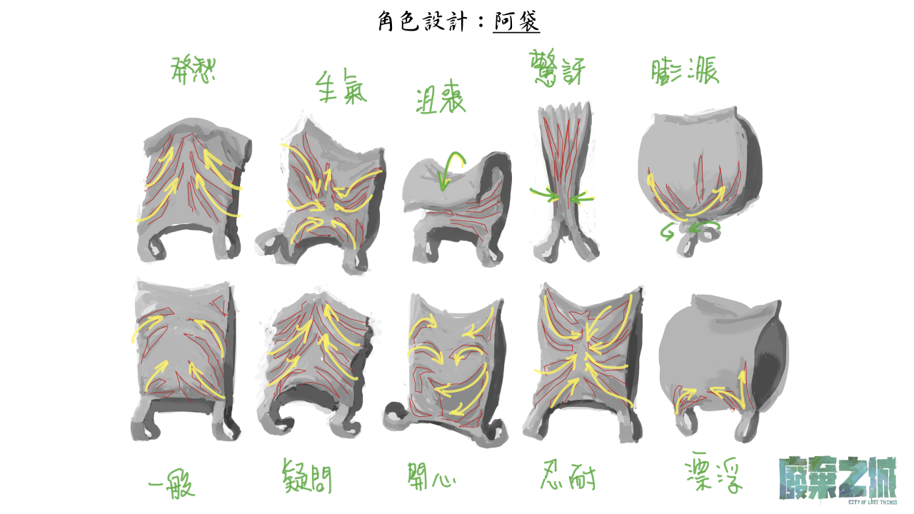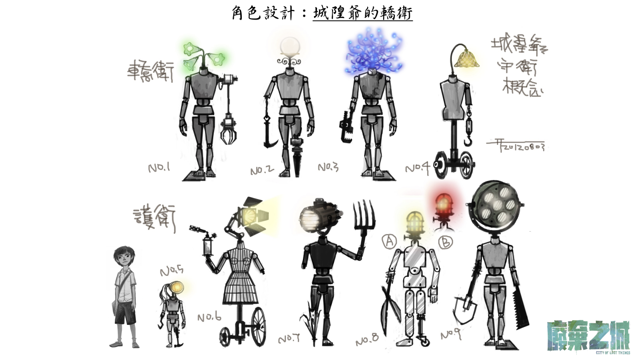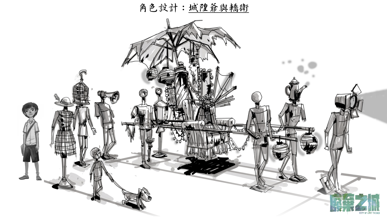 Enter your 《廢棄之城》最大的看點,就是原本毫不起眼的垃圾,居然轉身變成故事的重要角色,甚至還會自由的行動與說話。而在角色設計方面,易導腦海其實就有初步的角色造型概念,所以前期創作團隊的任務就是將其想法視覺化。於是角色都先經過 2D 概念設計,繪製 2D 的表演風格,再進到 3D 製程。
