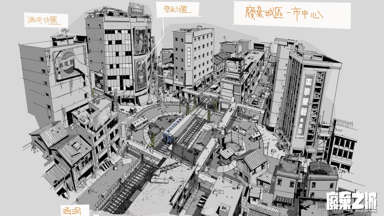廢棄之城的場景構想源自老西門町的樣貌,郭景洲認為過去的西門町的樣貌非常豐富,有紅樓、天橋、鐵軌等,與現在的西門町天差地別。而將過往繁華熱鬧的西門町作為廢棄之城的基底,帶來一種懷舊的氛圍。由於故事中主角小樹是由他生活的世界進到廢棄之城,再從廢棄城跑到最後一決生死、高潮戲的垃圾焚化廠,而為了要串連劇情發生的相關地理位置,團隊先繪製一張廢棄城的全景地圖,並規劃每場戲要在哪裡發生,才能設計出角色的移動路線,並依此路線繪製成腳本,規劃出一個小樹的冒險地圖。