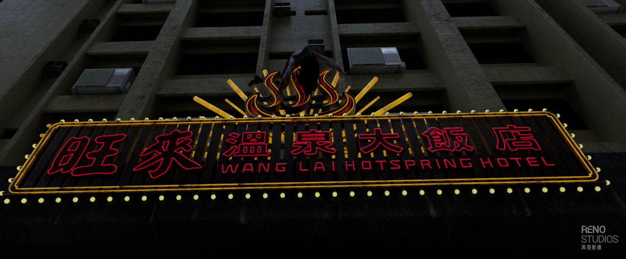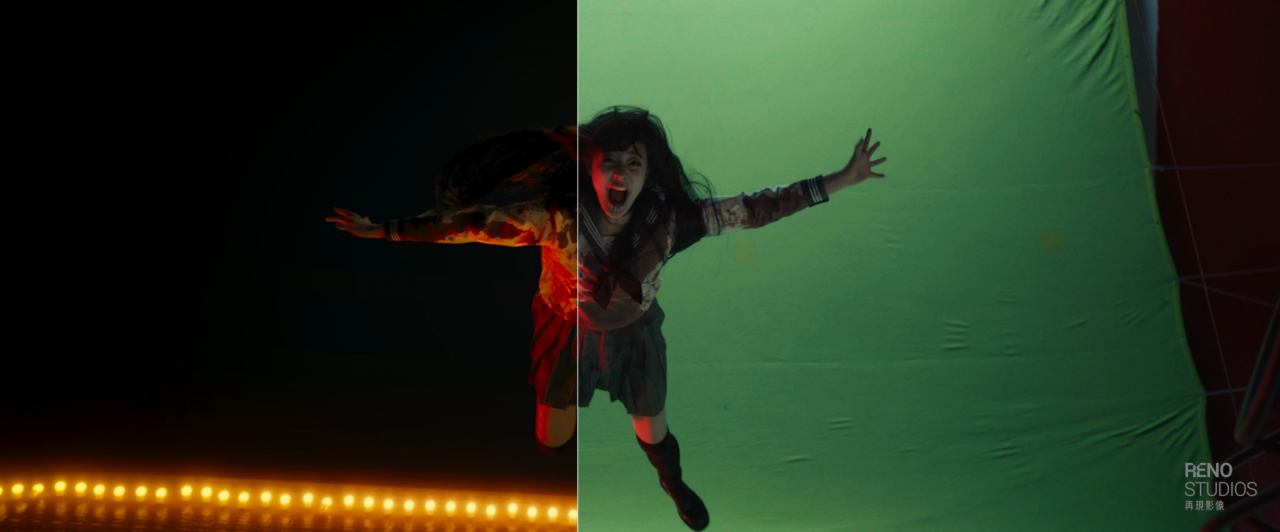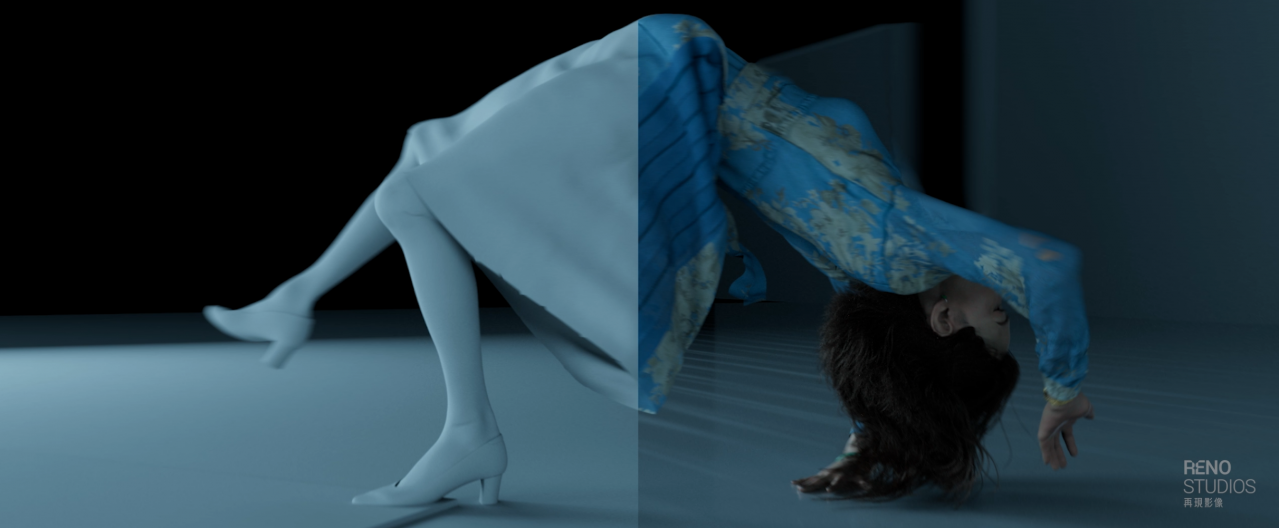 另一方面,為了增加真實感,團隊也使用了破布娃娃效果,讓動作看起來更為自然。「原本拍攝的大樓只有 9 層樓高,但為了讓跳樓場景更震撼,透過數位替身技術將其高度拉伸到 27 層樓高,讓角色從高處跳下來的效果更為壯觀,而不會顯得一下子就落地了。」郭憲聰補充著。此外,凱薩琳的服裝設計也讓特效團隊煞費苦心,數位替身的布料效果很容易露餡,尤其是她那件黑色蕾絲半透明的洋裝。幸好後來拍攝時使用了真實服裝,避免了數位替身中常見的布料不真實感。導演也補充:「我們在拍攝現場還是有討論什麼要用 CG 呈現,什麼要用實拍。盡量能用實拍就用,不要有太多全 CG 的畫面,畢竟 CG 還是要有實體畫面可以參考比較好。」