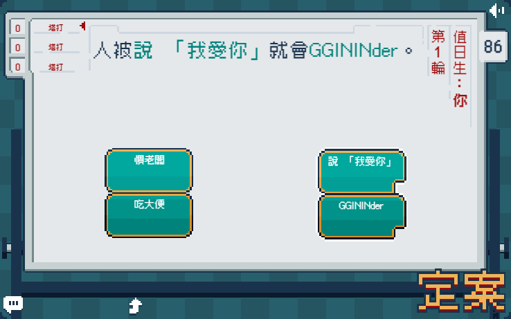 對於配對機制的設計塔打並不擔心,他表示:「單論配對機制其實不太難製作,但更方便的配對機制代表你不需要其他玩家在遊戲外的聯繫資訊,所以我打算先將遊戲做到基本上不會有 bug,在有玩家掛機時的應對機制做好,才會再去考慮製作更快速方便的連線方式。」
