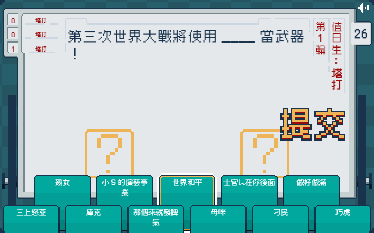 《災難公關》是一款回合制的像素風線上卡牌網頁遊戲,以桌上遊戲《黃牌》與《反人類牌(Cards Against Humanity)》網頁版為基礎,為了在高中畢業後能夠與四散各地的好友們一同回味遊戲時光,而決定製作簡易的網頁版遊戲,讓玩家們的互動不被距離侷限。映CG 邀請到遊戲製作人塔打來分享他的遊戲開發經驗。