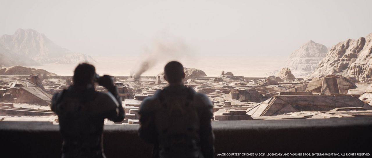 針對沙漠場景,Tristan Myles 表示他們盡可能將原先拍攝素材保留,將原先沙漠中的植物拿掉,並在沙蟲那場戲時將沙子變形與分解。而片中太空港與其他場景則是運用布達佩斯 Origo 工作室搭建的新外景場地中拍攝,周圍傾斜牆壁與地面也都上了土色特殊材料,反射光十分自然。另一位 DNEG 視覺特效總監 Brian Connor 則表示:「我們沒有使用藍幕,而是使用沙幕(Sandscreen)。與典型的藍幕相比,沙幕可以自由移動。對演員與工作人員來說,侵入性與干擾會更少。」而提到最為複雜的環境設計,兩位視覺特效總監的看法有所不同,Tristan Myles 回覆:「最複雜的是沙漠。由於須考慮到沙蟲龐大體積,所以沙子得保持在一定規模,製作上也必須創建特殊系統來模擬、渲染沙子效果,這很有挑戰。」而 Brian Connor 則表示:「我認為太空港和沙塵暴是最為複雜的。我們必須為太空港創建一個巨大區域,裡頭涵蓋許多宇宙飛船、撲翼機與香料收割機等。創造龐大而荒涼的環境,且又要看起來真實,並非易事,因此我們運用 CG 人群、士兵與各種道具來點綴。」
