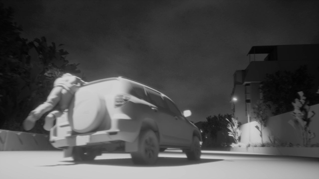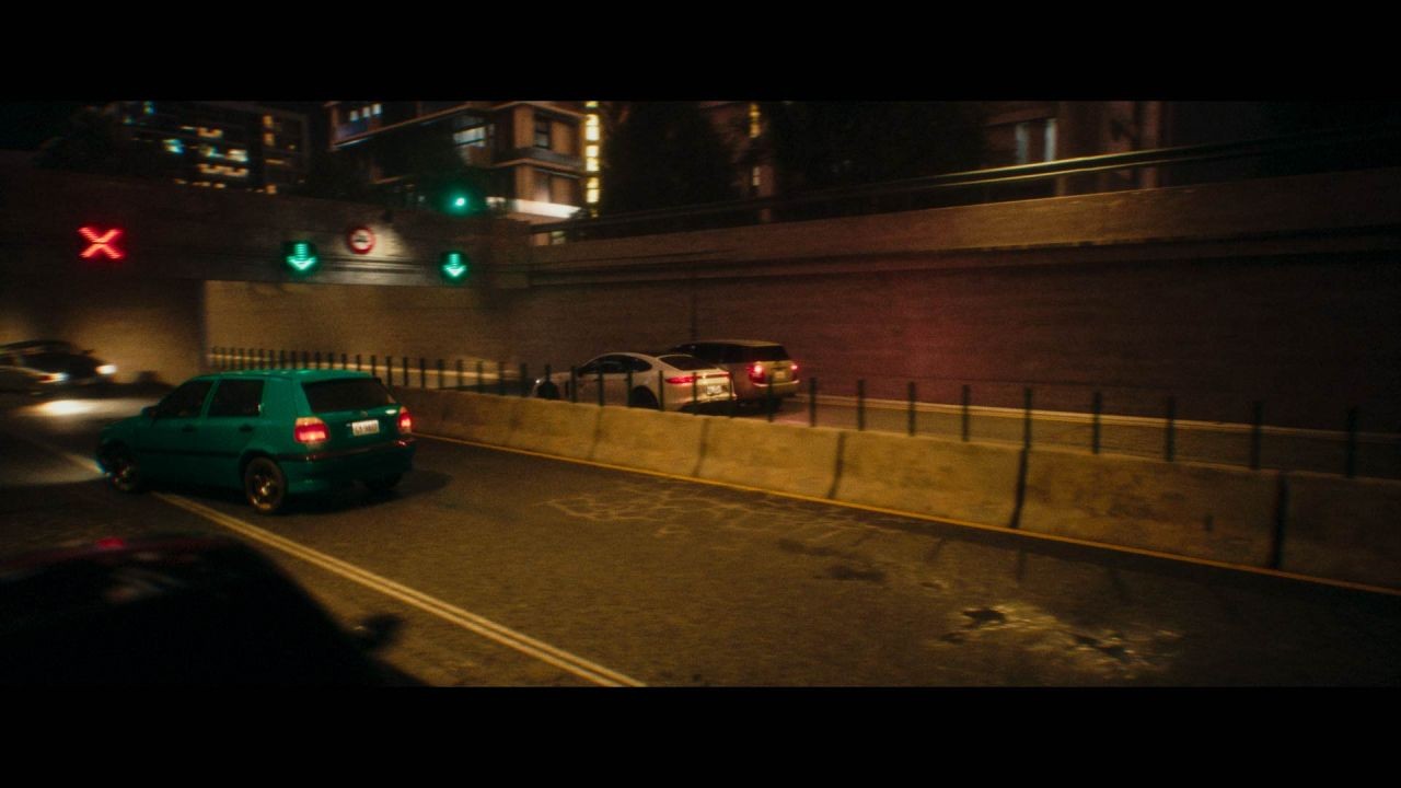 團隊表示,全 CG 鏡頭與戶外實拍的無縫接軌相當仰賴前期的詳細規劃,燈光、材質的色彩校正也至關重要,兩場飛車戲中最大的挑戰便在於此。另外,在某些鏡頭,他們也將真實的車子放在場景中,當作還原參考,再利用 UE 的即時同步功能,迅速調整讓色彩到位。