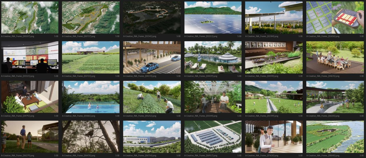 擔任本專案動畫企劃的 Alston 表示,客戶希望透過動畫具象化「以光養農」的光電農場構想,並展現如何結合循環設施與觀光發展,帶動地方創生。「這次動畫涵蓋光電案場、循環永續小鎮、加工廠、光電溫室與休閒旅宿等多樣場景,還加入了當地特有的植被與動物,目的就是希望觀眾能真實想像這座綠能基地未來的樣貌。」