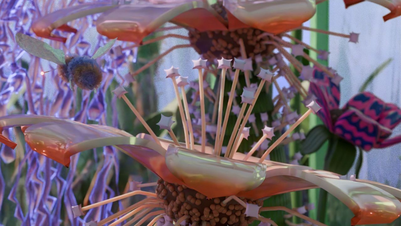 李佳樺:利用 Blender 的功能運算出意料之外的視覺效果,是我最享受的創作過程之一。例如:花蕊、花瓣的波動頻率,生物毛髮的生長效果,或是嘗試不同打光方式,與各種變形效果的融合。所以我喜歡在每一次的創作中,都嘗試一種新的功能,試著用不同的方法符合我的預想,然後留一段彈性空間,讓軟體的特性為我帶來驚喜。