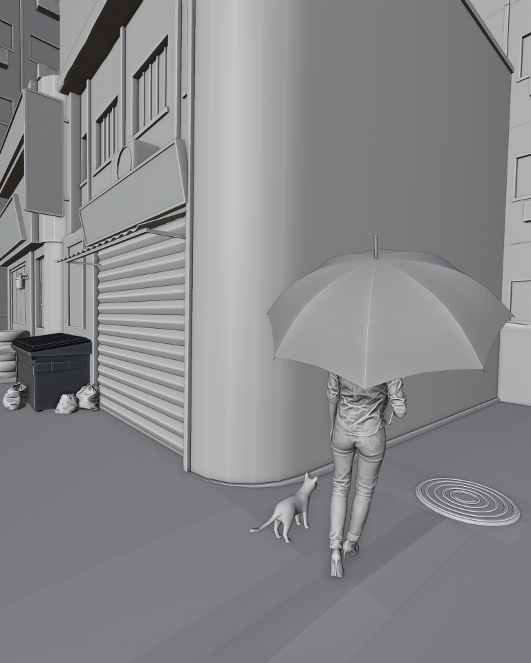 Louis Lin:要在 Blender 或任何 3D 軟體中製作逼真的作品,就得對細節非常關注。以我來說,我總是盡量別花過多的時間在看不到的細節上,這就是為什麼通常我的建築物只會有直接面向攝影機的面。反而我通常會想到的另一件事是燈光,我通常不會透過 HDRI 製作,取而代之的是使用手動調整,以完全控制燈光效果。製作紋理的重要技巧是讓攝影機附近的物件都保持高度細節,可以透過混合 PBR 紋理來實現。最後,擁有自己的材料庫及模型庫能替你在創作時節省大量時間。