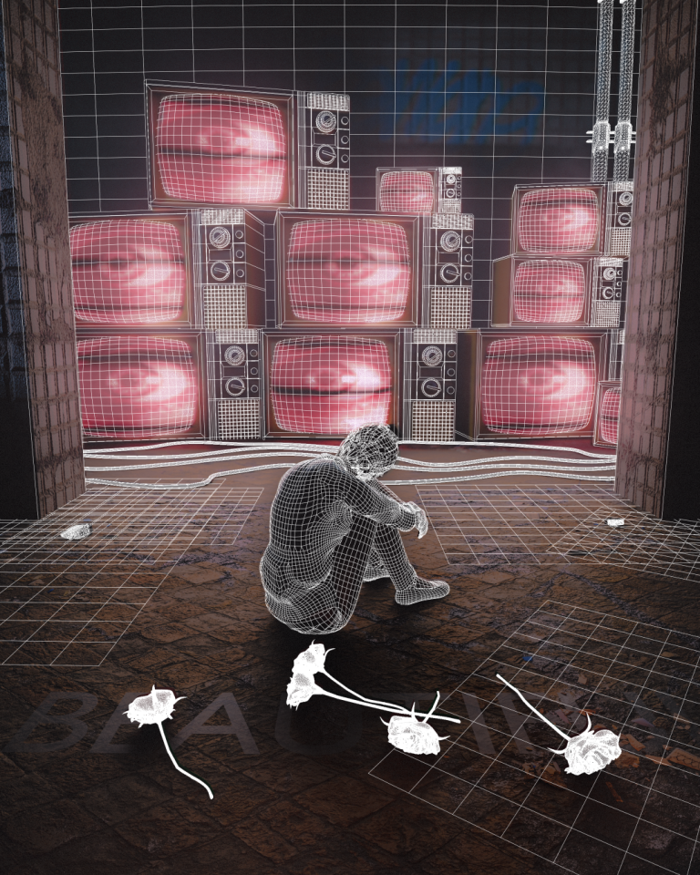 Louis Lin:《Beautiful》是所有創作中第一個具有深刻含義的作品。當時一位朋友請我在她的雜誌中創作一些關於「數位時代下人們的身心靈」的概念藝術。《Beautiful》背後的理念是每個人都是美麗的,但我們總被無數雙眼觀察及批判,使我們遺忘。為了更切合主題,我有替此作品立下幾個必要目標,其中顏色對比及燈光必須完美,讓人物的影子會遮住"Beautiful"這個詞的一部分,另一個是讓作品中的角色看起來不知所措。由於是第一次製作有強烈意念的作品,因此在許多層面上都很困難。再來因為是一個較為敏感的話題,我必須在足夠且正確訊息間取得平衡。另外,燈光也得正確地顯現出完美的陰影,同時我也花了一些時間調整角色的姿勢,以身體語言傳達作品的意念。