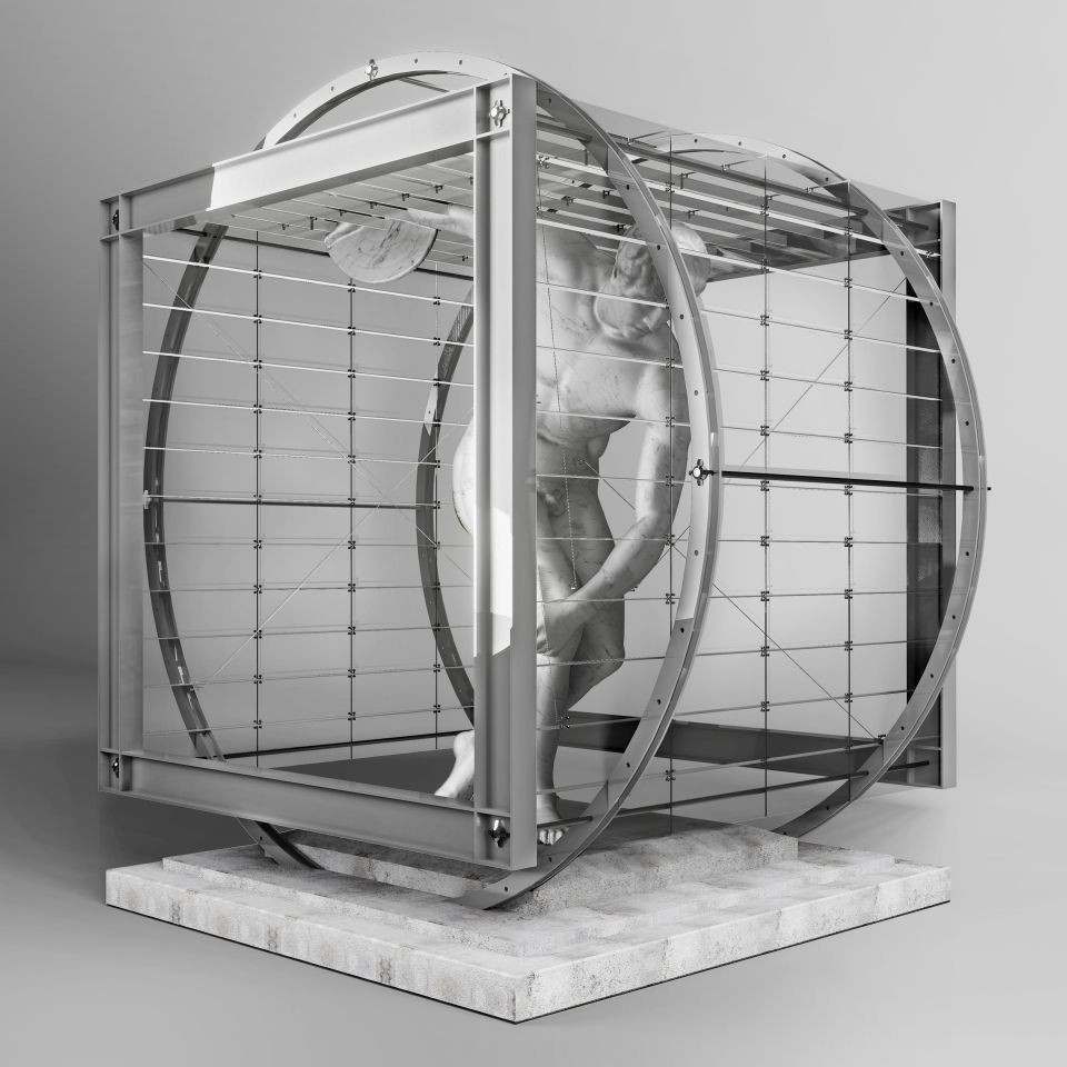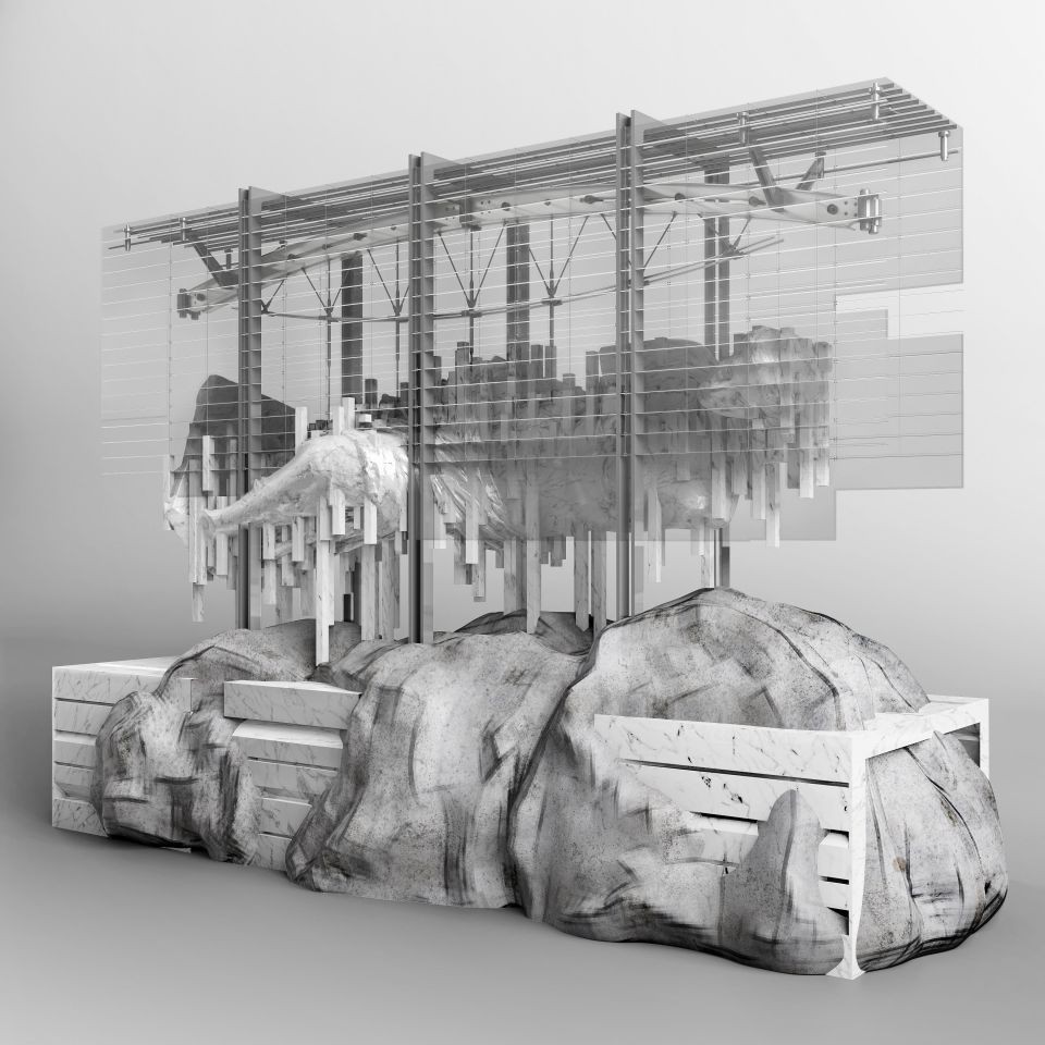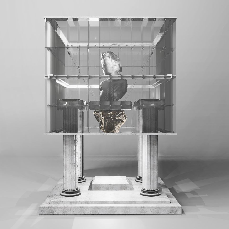 莊澤光:這系列作品延續了我先前的投稿,繼續在古典雕塑作品與現代的建築幾何上做實驗。不過相較於前一系列試著在組構中表現不同的結構行為,這次的創作更著重以現代建築去重塑雕像的內在含意。比方說以懸吊系統重現的德爾菲神廟 (Delphi)、以體積像素去表現未完成的米羅維納斯等等,這是透過現代幾何去延伸雕像本身意涵的方式。