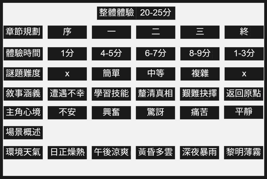 - 共有兩關解謎、一關敘事,共三道關卡。