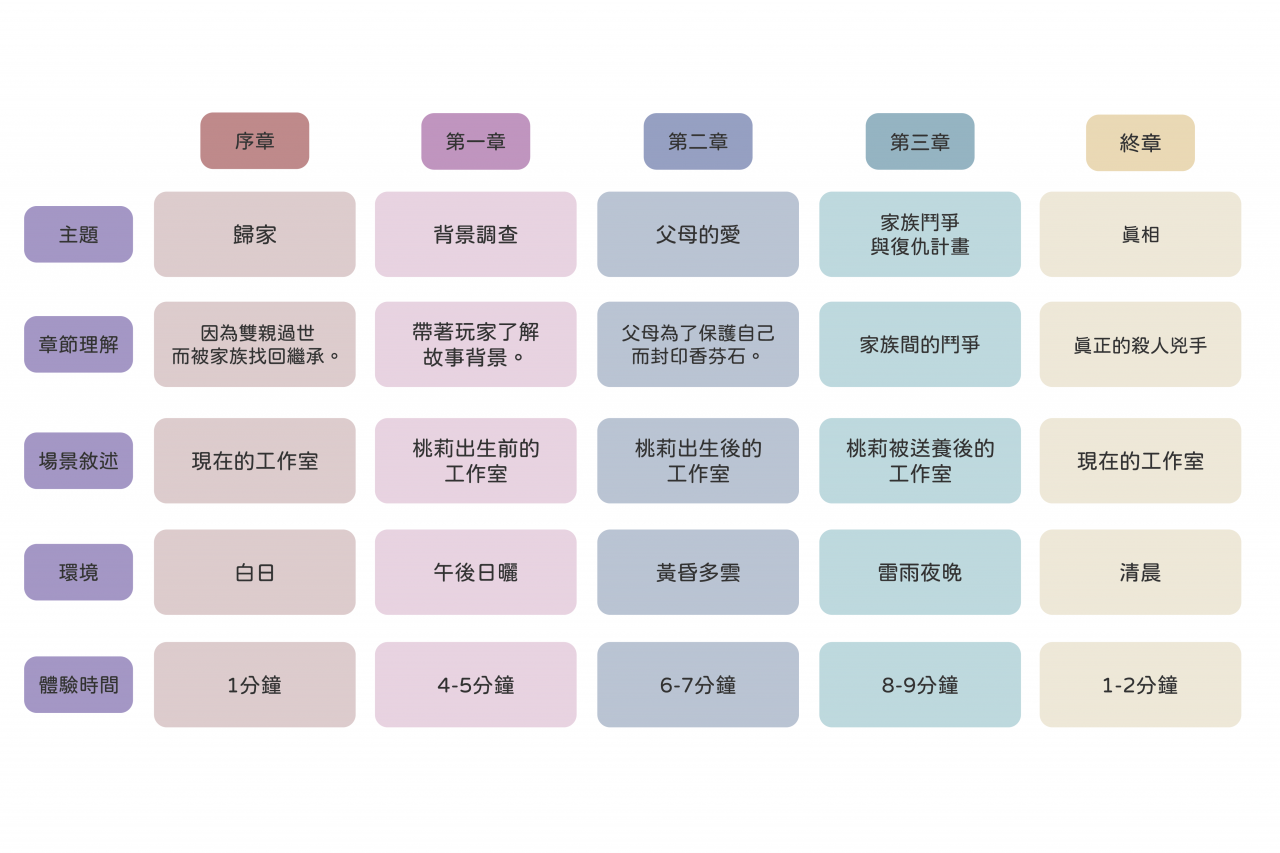 - 利用主角「桃莉」看的見香味的能力,帶出每個線索物件所擁有的味道以及劇情。