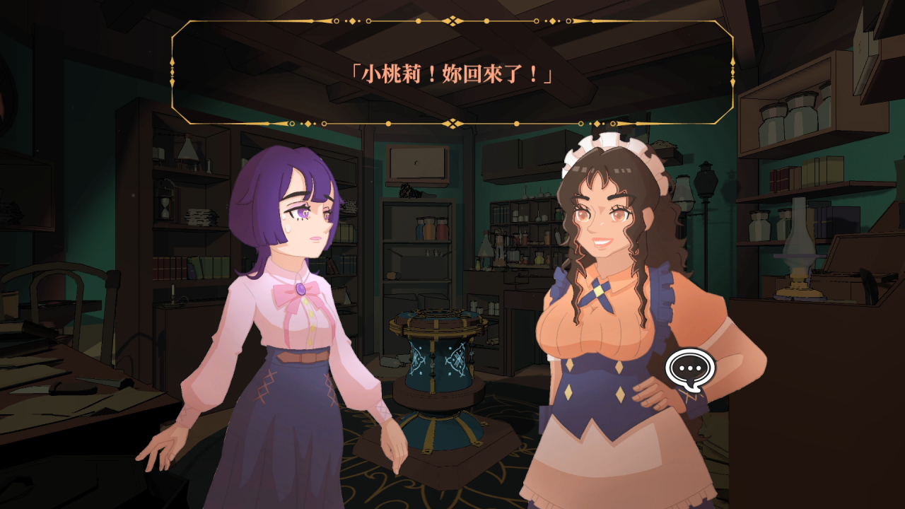 美術_林語謙:雖然《調香師》屬於 3D 遊戲,但遊戲中其實有不少 2D 的元素,像是角色之間對話的立繪、負責轉場及鋪陳劇情的 CG 圖、線索物件等等......。我們希望 2D 物件能夠很好地融入 3D 場景,因此選擇卡通渲染來當作整體主要的美術風格。我在繪製角色對話立繪時,花了許多時間來回調整陰影的上色方式,以確保立繪能夠較完整地融入場景。