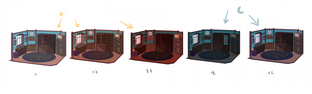 美術_蛋餅:場景的部分其實在很早期就出來了,當我們在討論遊戲的構成時,大概就有對場景的想像。因為在這個版本的調香師出來前,已經有上一個死在沙灘上的調香師了,所以這個版本也避開了很多前版本的問題。而遊戲是以卡通風格為主,在製作的時候也是儘量降低使用花紋,所以場景的很多物件都是使用色塊與色塊放置堆疊出來的。