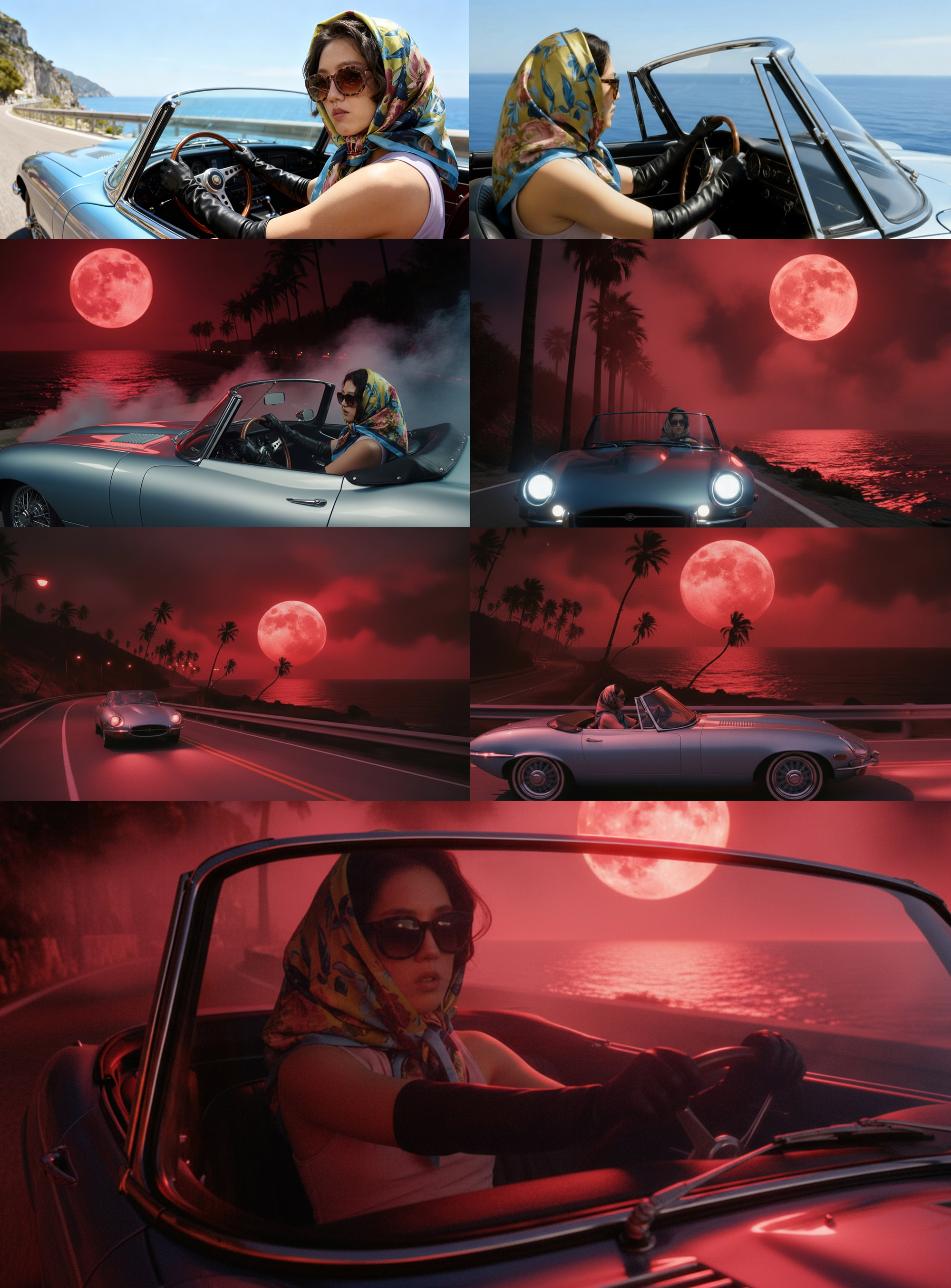 樂於與創作者激盪靈感的熙真,重新調整視覺設定,改以紅色調為主軸,將血月、海灘與棕櫚樹納入畫面。她進一步解釋選擇棕櫚樹的原因:「它彎曲的造型本身就帶有詭譎感,樹影形成的尖刺輪廓,隱喻女主角駕車穿越負能量的過程。」