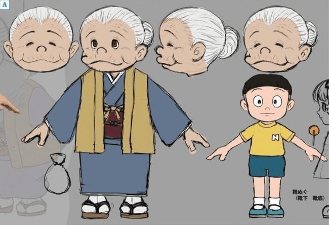 《STAND BY ME 哆啦 A 夢 2》新增了大雄奶奶這個角色,所以造型和動畫都需要重新設計和製作。奶奶的設計雖然是在挺直背脊站立的狀態下繪製的,但在電影中一直是彎腰駝背的狀態,所以團隊在建模的同時,組裝了一個簡易的骨骼,並檢查了最終的彎曲狀態。另外,建模比畫設計圖時麻煩很多,所以奶奶的造型從身體、頭髮到服裝,都是由同一個人負責的。