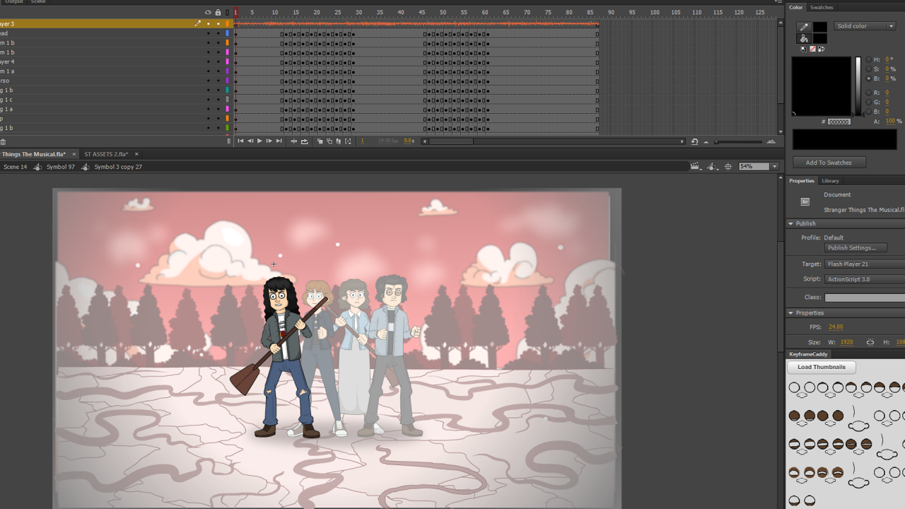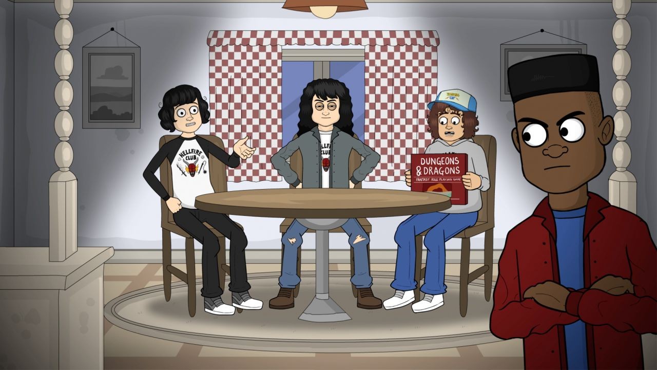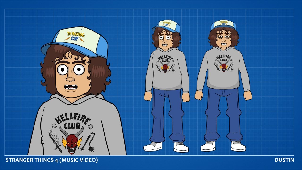 這次《怪奇物語 4》的動畫音樂劇 MV 總共有三位藝術家參與其中,分別是 Danny、Logan 和 Whitney。Logan 表示 Dany 負責製作並設計影片裡的所有角色外觀、背景與動畫,Whitney 負責人聲和歌詞;而Logan 除了這兩點外,還負責伴奏編寫、錄音和剛剛提到的分鏡表製作,據他透露整個過程只花了一個禮拜。