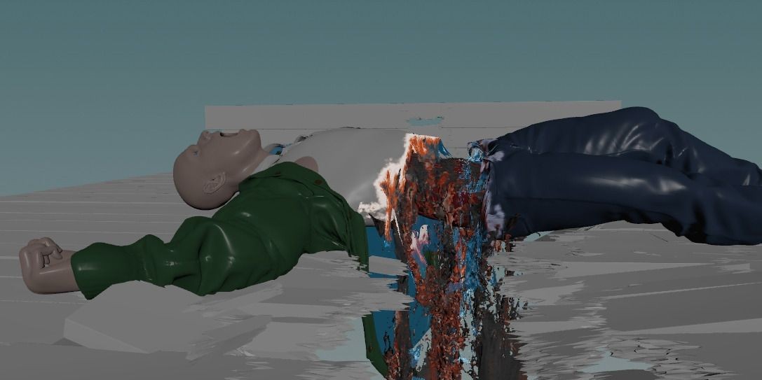 裂縫合而為一的過程中,橫跨了艾迪的拖車、拖車公園、情人湖及弗雷的死亡現場等 4 個不同地點,雖然地點不同但都具備相同元素,就是紅光從底部冒出來與、裂縫兩側的巨大黴菌與薄膜等等。Justin 表示:「水底裂縫是個很特別的挑戰,因為我們想呈現出波及至整個湖面的動態效果,不只是單純的水位下降。也因此,我們提出湖水可以像兩個面對面的瀑布往內灌的想法,物理上看來或許不可能,但看起來會很酷!」