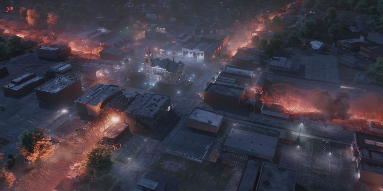 劇情最後,威可那殺死 4 人成功達成開門條件,4 道裂組合變成一個巨大裂縫,並間接殺死了傑森與其他民眾。影集中這道巨大裂縫幾乎跟整個霍金斯一樣大,Justin 表示團隊用雷達與攝影測量法製作一個虛擬霍金斯,最初是用簡單的動畫還有特效去營造出裂縫移動的效果;接著製作許多 FX 的 layout,像 RBD 模擬、黴菌、樹木、煙霧、灰塵、顆粒物及火焰等等。另外,有些細節是用 DMP 製作的。