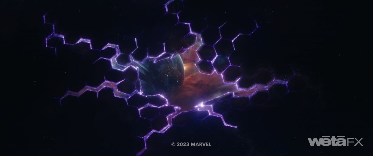 Sabine:導演 Nia DaCosta 是個很棒的人,他希望我們在製作特效之前,可以盡量呈現出它在真實的物理條件下所反應的樣貌。因此,在確定時空故障的最終設計之前,團隊與美術組共同研究了黑洞和重力波,而三位女英雄所使出的類光能量波,也是根據電磁波譜的物理現象所延伸構思的。