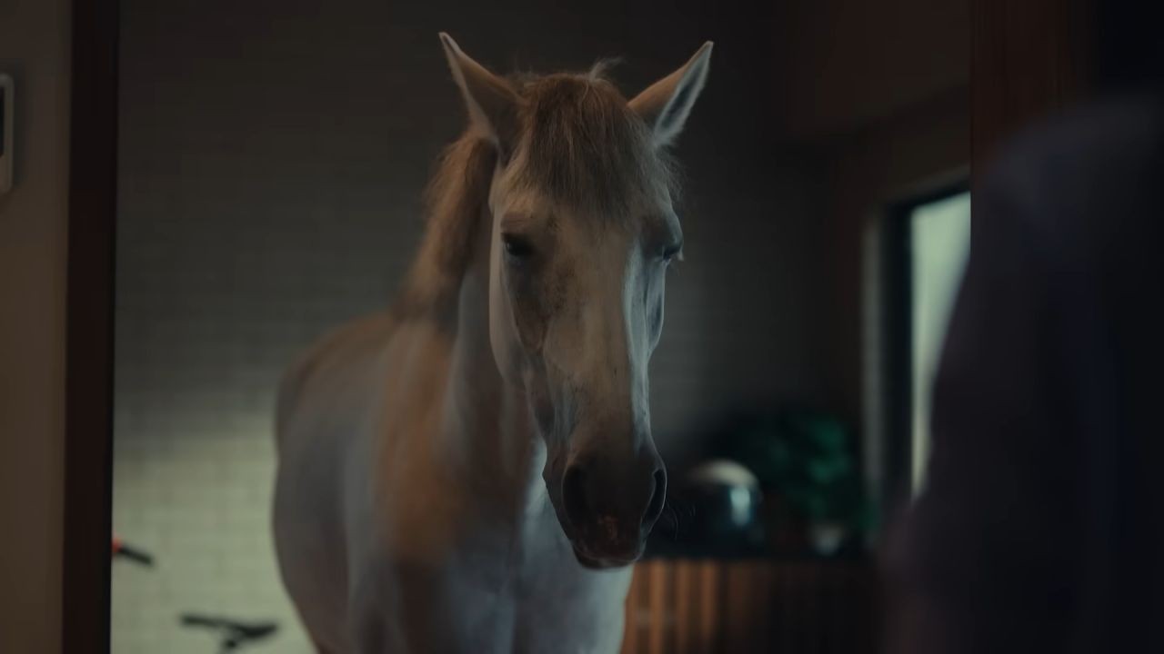 嚴振欽:首先,因為真實的馬其實不太會咬東西,牠只會吃東西。我們在現場只能用紅蘿蔔來吸引牠去做出咬東西的動作,然後在後期將紅蘿蔔替換成韁繩或白蘿蔔等 3D 物件。因此,我們也進行了許多 CG 替換實體的作業。
