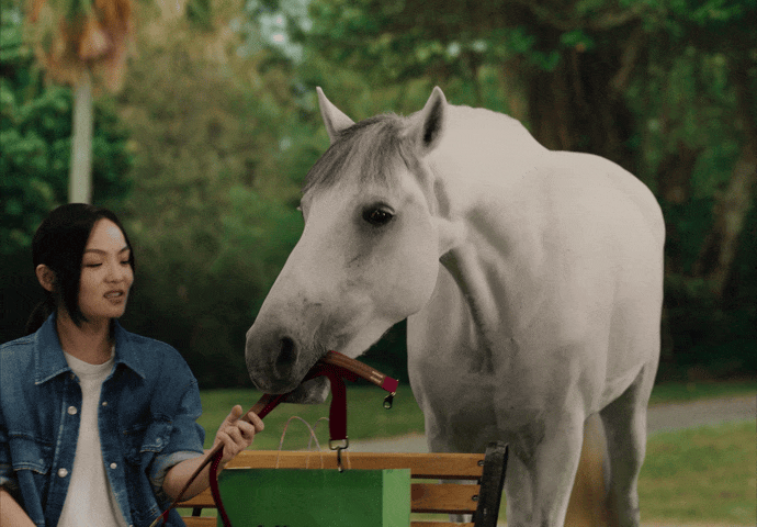 這次的經驗相當有趣,因為我們從馴馬師那裡學到了很多,了解了馬匹的脾氣和喜好。原本腳本中有許多動作會需要激怒牠,或引發劇烈情緒才會產生,但這樣的做法可能會造成虐待動物的問題因此無法執行。Uber Eats 也特別要求我們不得進行任何虐待動物的行為,甚至派人到拍攝現場進行監督。因此,整個拍攝過程都是在非常安全且不涉及虐待動物的情況下完成的。