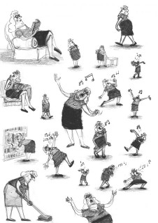 Gisli Darri Halldorsson:我想讓角色有生活氣息,而不只是眾多角色中的其中一位背景人物。他們與這個世界同在,生活在這個世界。因此每個角色的外觀設計,都有暗示這個角色常做的行為或個性。例如說,酒精夫人有著像紅酒般的深紅頭髮、教音樂的老師有著如鳥喙般的大鼻子。而有些角色起初設計的太相似,比方說健康習慣很好的人與剷雪老人長得太像,於是我為老人創造更多不一樣得外觀。