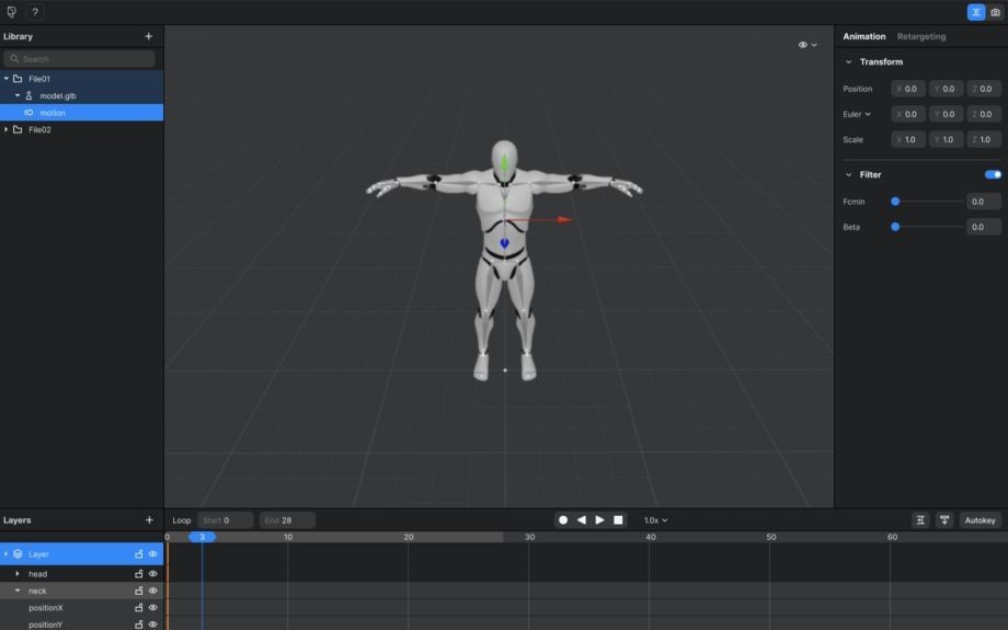 然而,Plask 最顯著的特點是它能夠利用任何影片作為動作捕捉來源,來為你的角色製作動畫,這要歸功於該工具的 AI。使用者可以直接在 Plask 上傳任何影片或使用任何由相機記錄的動作以捕捉關鍵幀。Plask 將自動重新定位、操作和改良,並輸出到編輯器上。也可以使用電腦攝像頭記錄自己並獲得出色的結果。