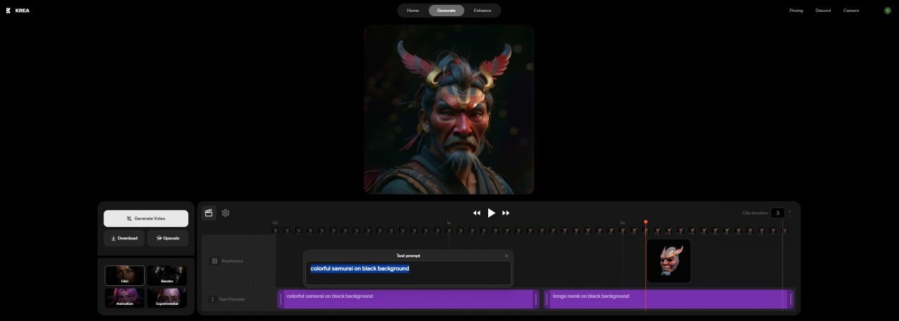 Krea AI 一大特色是讓創作者有更多自定義作品的空間,而非全權交由 AI 生成,好比說生成圖片可以讓創作者去設計構圖,甚至生成影片可以讓使用者設定關鍵幀。免費方案有生成次數限制以及生成 2k 畫質影片,付費方案可生成高達 4k 的畫質。