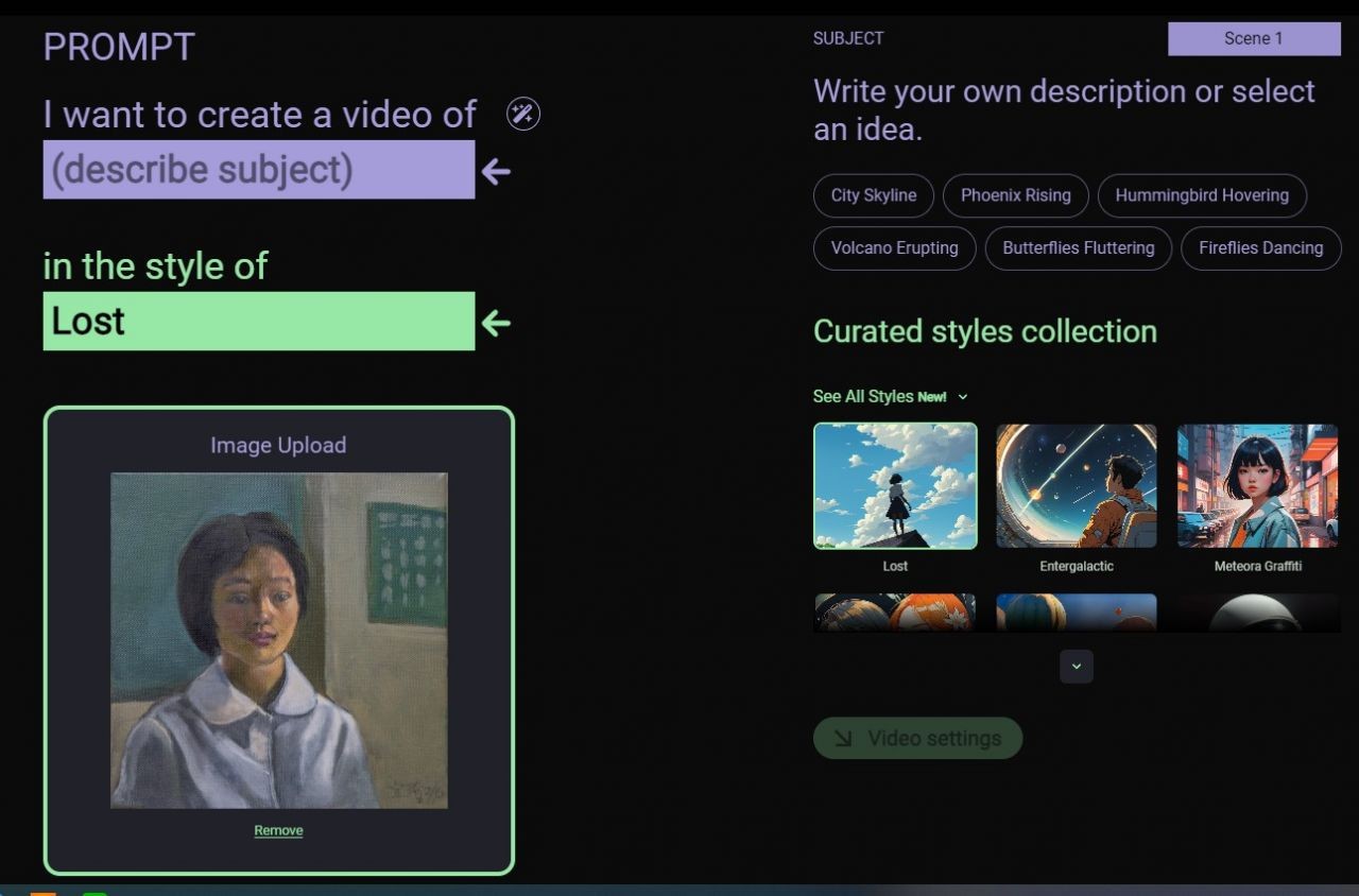 先前編輯撰寫「零預算」AI 電影《Our T2 Remake》該團隊運用了 Kaiber 來生成影片。 Kaiber 可以透過圖片與聲音轉化影片,編輯餵食了一張自己繪製的油畫,並點選自己想要的風格與角度,Kaiber 可以試用期 7 天可免費生成 6 秒影片,付費則可以生成長達 16 秒。