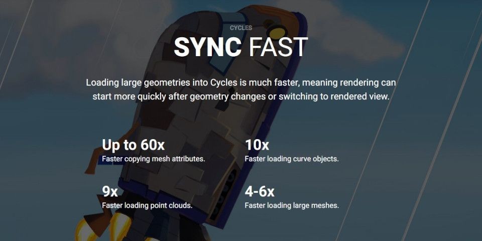 除了上述兩大要點外,Blender 3.6 下載大型幾何圖形的速度也更快了,網格下載速度提高了 4-6 倍,點雲快了 9 倍,而 Curve 則提高了 10 倍。Blender 3.5 推出的 Light tree(可用於消除噪點,但算圖時間會延長)現在也支援多執行緒與實例化(Instances)了,在 Apple M1 處理器上的運行速度可高達 11 倍。