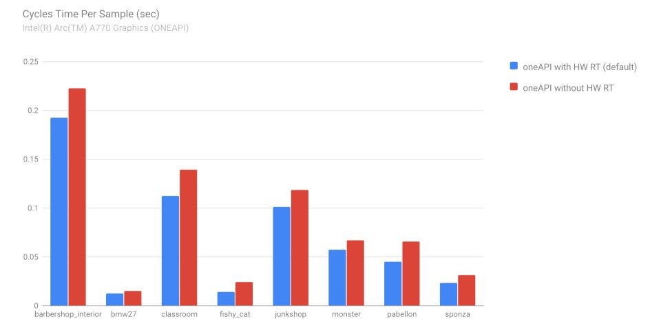 說到 Blender 3.6 的另一個重點,必定是 AMD、Intel 顯卡也能在 Cycles 使用光線追蹤了。儘管 Cycles 支援兩者的顯卡算圖,但由於不支援光追,導致性能明顯低於 NVIDIA 的顯卡。對 AMD 使用者來說,Radeon RX 6000 及 7000 系列,與 Radeon 6000 和 7000 系列以上的顯卡,可透過 AMD 的 HIP RT 正式使用光追。至於 Intel 使用者,可透過最新版本的 Embree 4.1,在資料中心 GPU 與新的 Arc 工作站系列顯卡上使用光追。據 Blender 官方表示,在使用 Intel Arc A770 顯卡的測試過程中,啟用光追可使場景性能提高 10~40%。