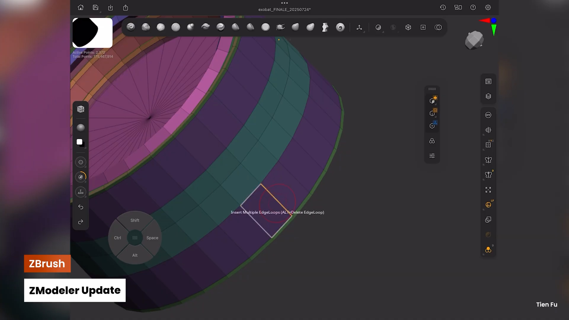 全球最多人使用的數位雕塑軟體,則在 ZModeler 上做了更新,在點線面的選取上更加直覺清楚,讓在 ZBrush 中做多邊型幾何建模更加方便。還有一些新功能如下: