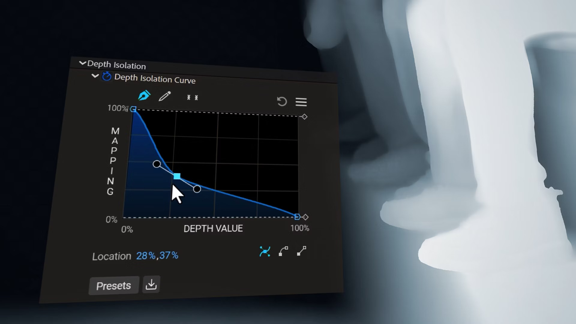 透過內建的「Depth Isolation Curve」曲線控制器(可以想像成焦段選取範圍),可以把 Z-Depth 轉換成各式遮罩。例如透明遮罩、Displacement Maps、Blur Maps 等,結合其它特效如火、煙、流體的圖層,堆疊出更多細節。