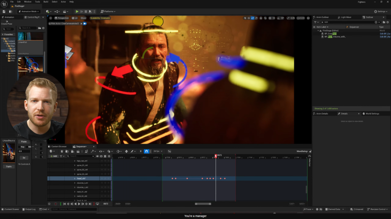此外,ActorCore 可與 Unreal Engine、Unity、Maya 與 Blender 等軟體連動,或搭配以 AI 提升動畫角色自然姿態的 AccuPOSE,免除手動逐格調整的麻煩,打造順暢無縫的動畫製作流程。「只要將 ActorCore 的 3D 動畫放入 UE 中,就能夠擁有戰鬥場景的基礎。」身兼導演、製片人與攝影師的 Charlie Driscoll 經常在個人 Youtube 頻道上分享他以 UE5、MetaHuman 和 AI 工具製作短片的過程,近期他以 ActorCore 的徒手格鬥動作包製作了一部功夫風格的動作短片,並使用 Move.ai 的無標記動作捕捉技術,搭配多部 iPhone 捕捉自己的肢體動作,最後與 3D 戰鬥動畫融合,賦予電影般的動作感和個人表達力。