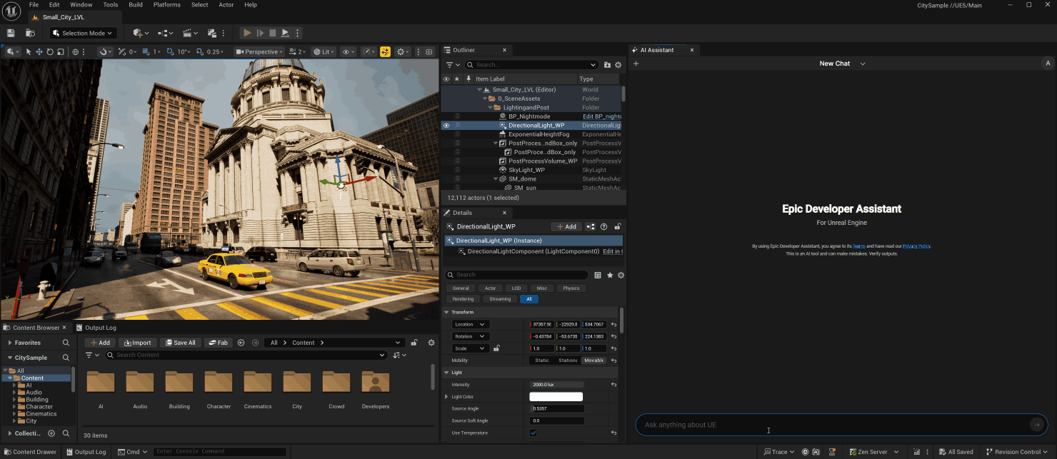 新功能 AI 助理讓使用者無需離開 Unreal Engine 搜尋技術問題的解決方法,可透過 Unreal Editor 內的專屬介面,使用自然語言提出問題,AI 助理會提供逐步操作說明。這項功能對工程師而言,可協助撰寫程式碼;而對 3D 藝術家來說,則有助於解決技術相關的疑問。