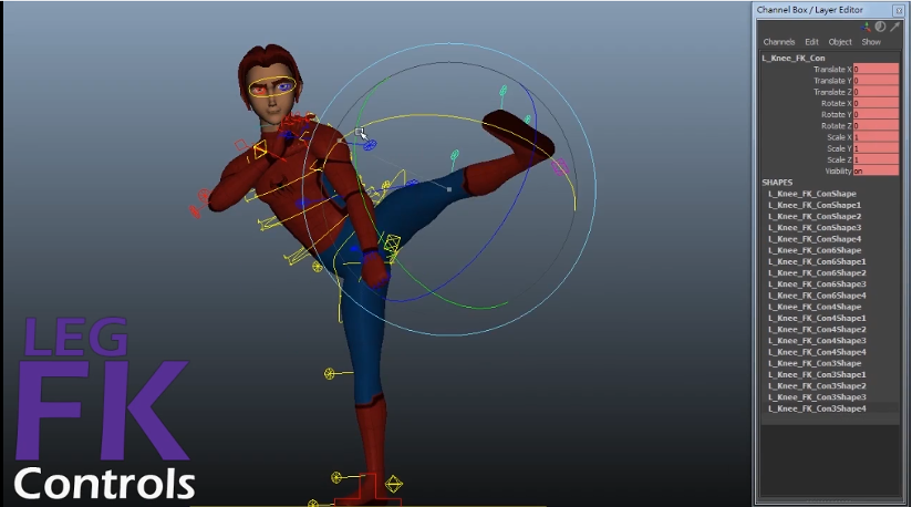 他補充 FK 與 IK 在角色表演上各有優勢。FK 以旋轉為主要運動方式,特別適合製作帶有弧度的運動軌跡。以走路擺動手臂為例,只需控制肩膀的旋轉,就有很漂亮的擺動弧度 。相對的,Maya 在計算 IK 位置資訊時,採用一個點到另一個點,最短直線路徑。若使用 IK 製作走路時的手擺動,當手從身後揮到身前,手會以平移呈現,需額外加入更多關鍵格(Key Frame)才能製作出流暢的手擺動弧度,較為耗時。