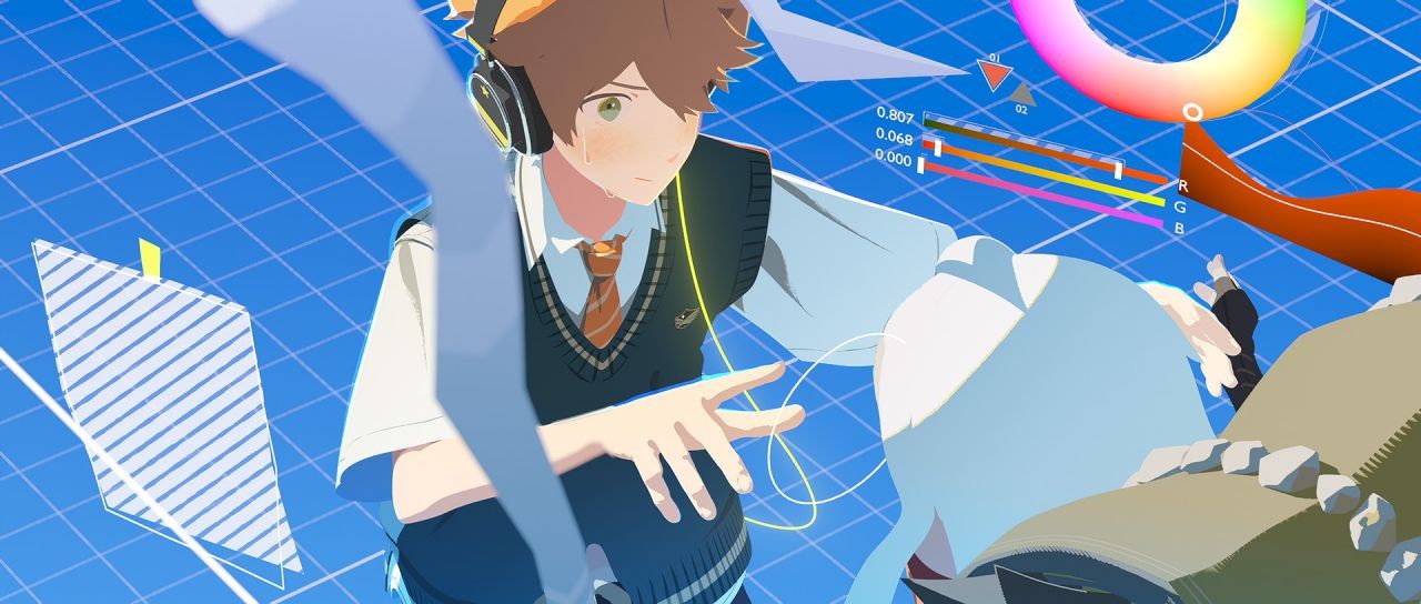 ぽぷりか:因為動畫創作的過程,對許多人來說,實際上可能是一個相當枯燥的過程。然而,對於創作者而言,在製作動畫的過程中,內心實際上是充滿快樂與雀躍的。我希望能將這份雀躍的心情呈現在畫面上,因此才將這些畫面融入電影中。由於我在進行 3D 創作時,會非常深入其境、全心投入,雖然仍然隔著螢幕,但我感覺自己彷彿將所有介面都移除,置身於那個畫面之中。就像男主角朝屋彼方在虛擬實境中創作的情景,這種感受正是我想要傳達給觀眾的。