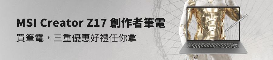 MSI Creator Z17 強大的處理器及顯卡規格與充足的記憶體,幫助創作者不必面對記憶體不足而卡頓的尷尬狀況。輕薄好攜帶的俐落外型、長效的電池續航力,搭配觸控螢幕與手寫筆,可以面對各種工作環境,可說是滿足了現代創作者的必須需求。