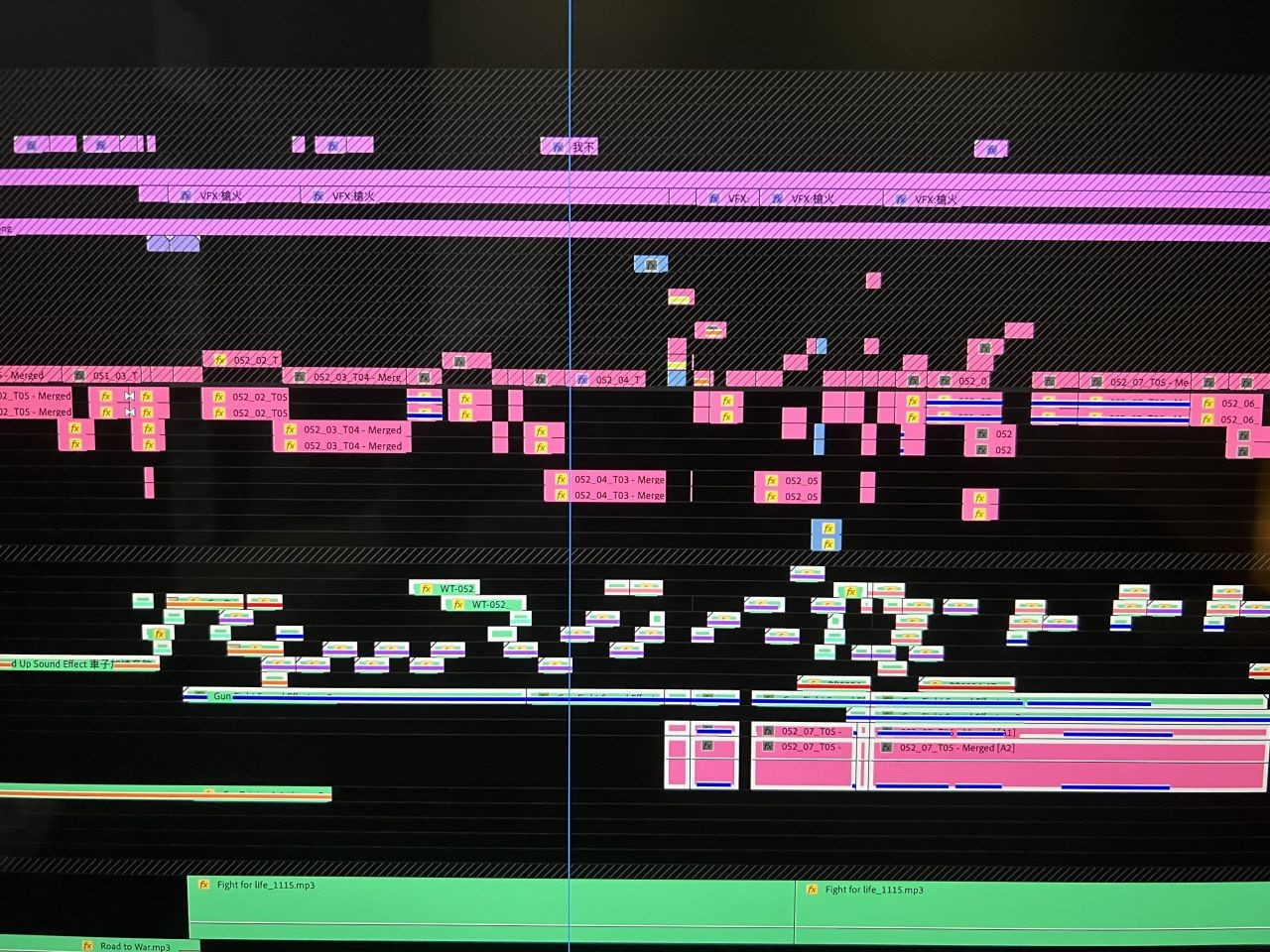 陳俊宏:我會先看劇本,標註每場戲想要表達的重點,通常會有助理幫我順剪第一稿,讓我看到照著劇本或拍攝設定的版本,接著我會思考結構上是否有調動的需要,以及每場戲是否有達到它應該有的作用;再來我會看每一場的拍攝素材,把覺得好的段落蒐集在序列裡當作素材庫,之後再把素材庫看一遍,這往往可以激發出新的想法。後續我會再進行精剪,若需要調整架構的話,可以利用順場表先在紙上做剪接,先把每條線用不同顏色表示,比較方便思考場次的調動,剪完一個版本後再與導演一起工作。
