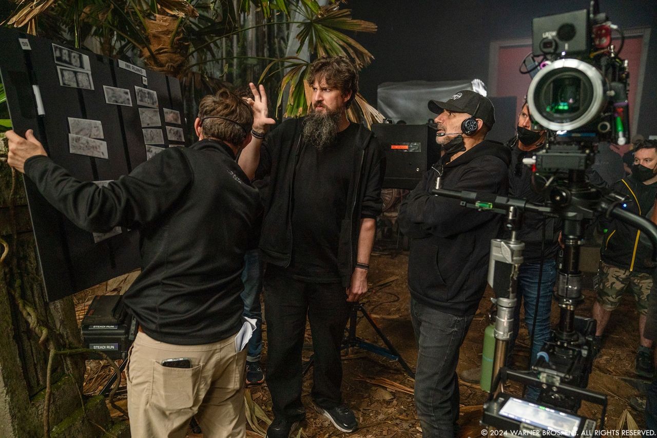 在拍攝羅⾺實景(和里約的最初幾個畫面)時,他們相當仰賴 Previs 以及 Third Floor ⾃⾏開發的即時 AR 軟體 Cyclops,前者使他們可以順利安排角色的移動路徑,Ongaro 本人帶領的第二攝影組也使動作設計更有效率,後者可以讓他們在現場就看到⼤致的鏡頭以及怪獸們預期會在的位置。針對⾶航鏡頭,美術部⾨則是將還原真實⼤⼩的航艙固定在由彎曲 LED 牆包圍的液壓系統上,在背景播放於冰島拍攝的畫⾯素材以及閃光影像等,以此創造空⼼地球的渦流景觀。Alessandro Ongaro 指出,在實景拍攝時最困難的部分是⽔晶⾦字塔,他們透過 DNEG 操控⾦字塔頂端的照明裝置,與聲⾳同步。