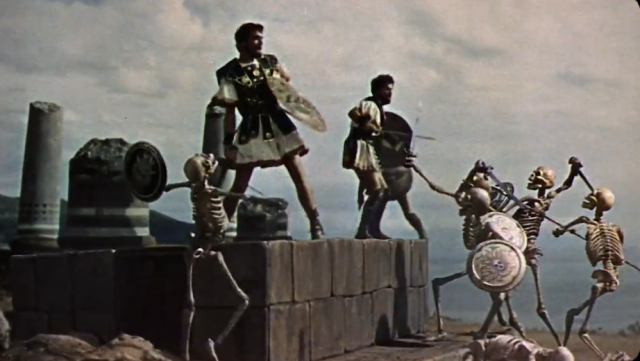 在這些怪物電影中,最精彩的絕對是定格動畫之王雷哈利豪森製作的《傑森王子戰群妖》,其中一段 5 分鐘的骷髏大戰,絕對是曠世巨作。雷哈利豪森在四個半月的時間單槍匹馬地完成這段動畫,在每張單獨的幀中,需同時移動七個骨頭人,每個骨頭人還有劍、盾等五項道具,還需要與真人鏡頭做搭配,最後的成果也成為令人難以置信的傑作。